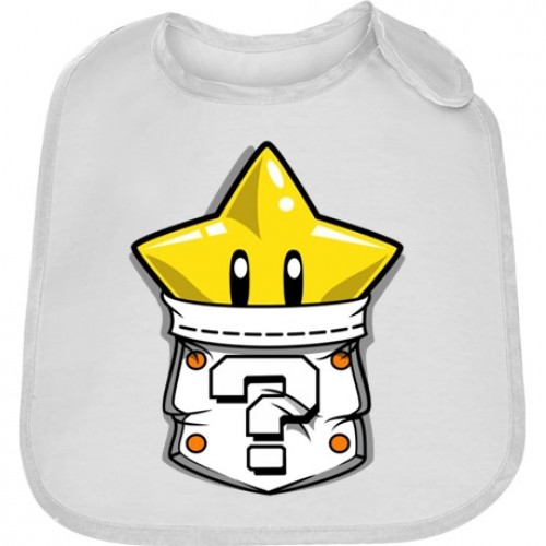 Детски лигавник със странично меко велкро закопчаване. Предната част е от памучна материя, а гърба от водоустойчив полиестер.
