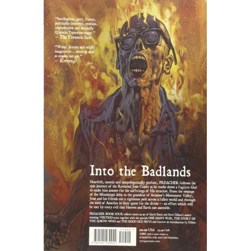 Writer Garth Ennis's violent, scabrous journey across America's religious landscape continues in this fourth volume. During some down time, Jesse Custer faces an enemy from the past who seeks vengeance for his father's death. Also includes a story spotlighting the Saint of Killers and a standalone tale starring Cassidy, the vampire. Collects Preacher #34-40, Preacher Special: One Man's War, Preacher Special: The Good Old Boys, and Preacher Special: The Story of You-Know-Who.